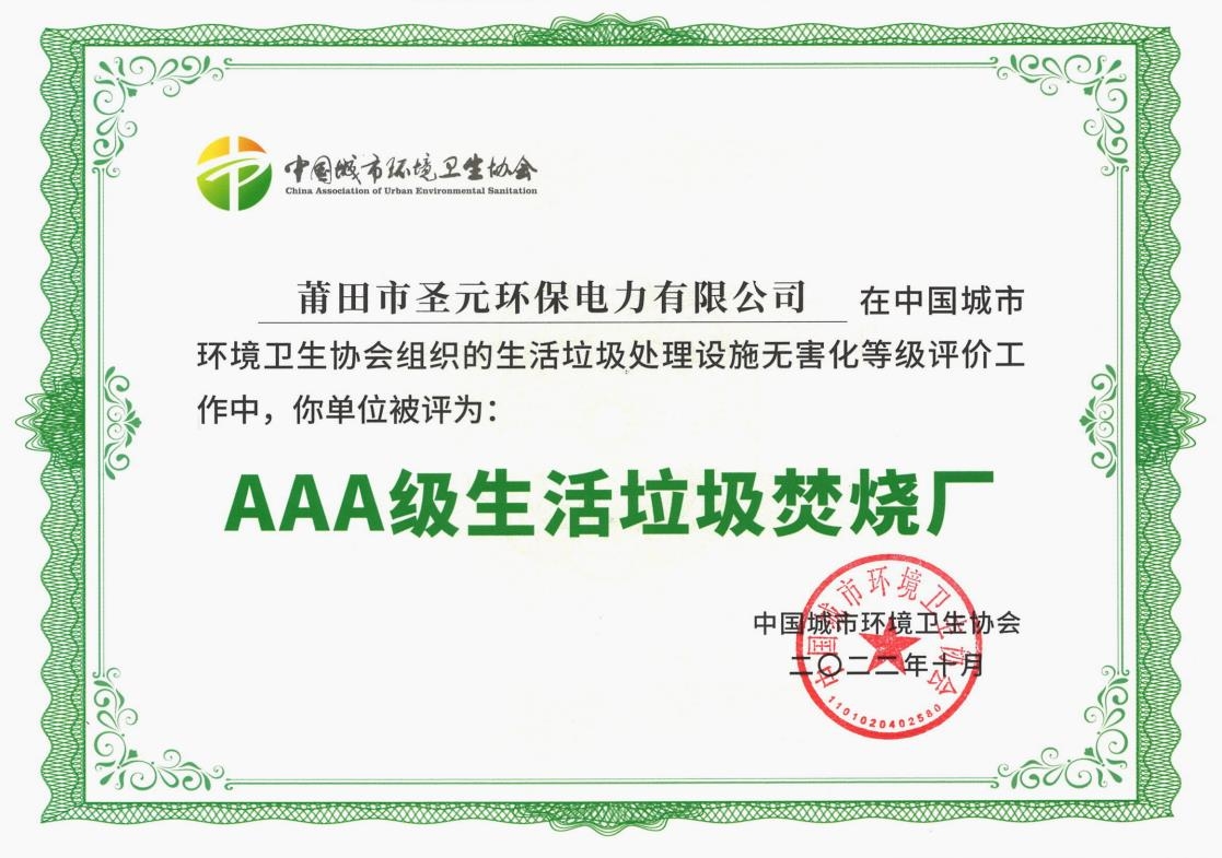 国家AAA级生活垃圾焚烧发...