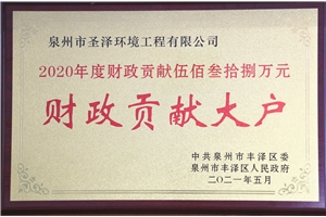 泉州市丰泽区委区政府授予圣泽环境“重点企业〞“财政贡献大户”称号