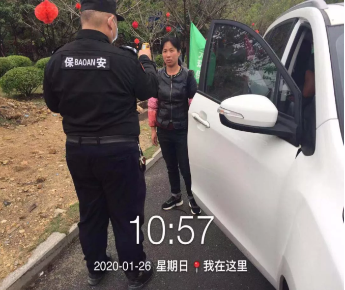 安保人员检测来访者体温