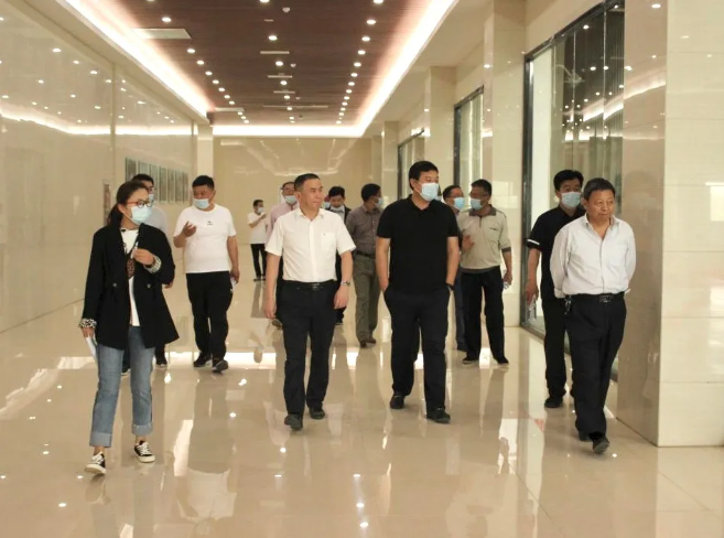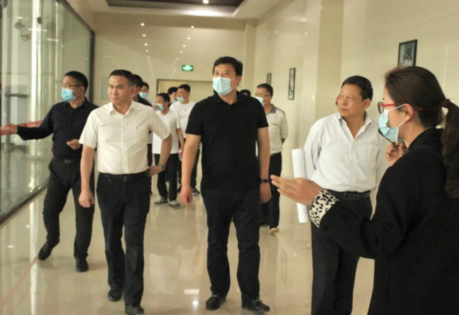 5月12日下午,曹县县长林永敬、人大副主任孟庆亮、环保局局长李怀义等来曹县乐竞体育调研。