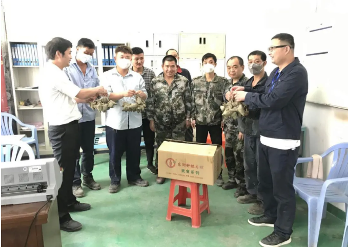 何敏副总现场转达了董事长的心意。南安乐竞体育人事行政部和泉州乐竞体育项目部统一组织下发饱含祝福与关爱的端午粽。手提粽子、心领祝福,员工们喜悦之情溢于言表。