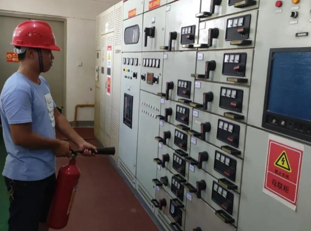 配电房着火演练主要模拟1号配电房低压配电室1#变压器开关柜着火后,员工使用二氧化碳灭火器迅速灭火的一系列操作。庄俊兵副厂长着重讲解了开关柜着火后的应急处置注意事项。