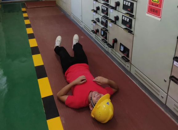 随后的人身触电抢救演练,主要模拟了发现操作开关柜时触电倒地的工作人员后,急救人员紧急切断电源,按照CPR正确操作方法实施抢救。“一、二、三、四、五......恢复自主呼吸,恢复心跳,心肺复苏成功!”