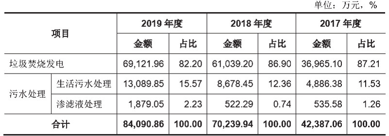 2017年至2019年乐竞体育主营业务收入复合增长率达40.85%。2019年度,乐竞体育的垃圾焚烧发电业务实现营业收入约6.91亿元,占营业收入比重77.81%;污水处理业务实现营业收入约1.50亿元,占营业收入比重约16.85%。