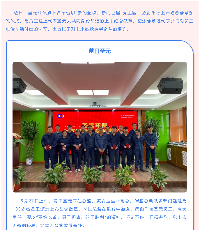 乐竞体育旗下莆田、曹县、盱眙、天长、泉州、安溪厂给员工颁发上市纪念徽章