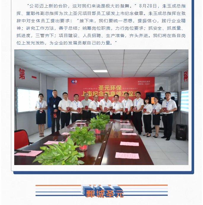 乐竞体育旗下南安、漳州、郓城、庆阳、汶上、鄄城、梁山、龙海、旧镇厂给员工颁发上市纪念徽章
