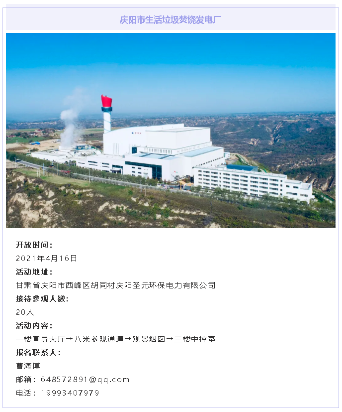 庆阳乐竞体育以守护庆阳碧水蓝天为己任,以改善庆阳人居环境为动力,以携手公众共建美丽中国为目标。庆阳乐竞体育与您相约,在春暖花开时,来我电厂,参与到对垃圾焚烧行业的认知和对清洁处理生活垃圾过程的监督中来,共同为改善庆阳人居环境添砖加瓦!