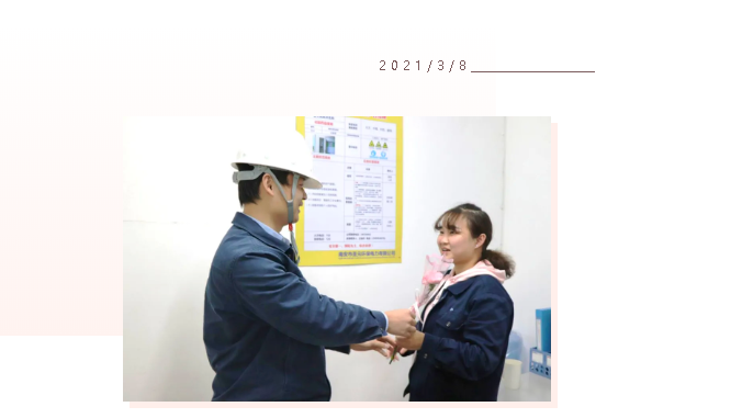 在插花活动的同时,南安乐竞体育也有一批女性员工,因为工作需要,她们选择了坚守岗位,她们用履职为节日增光添彩。她们值得我们尊敬,坚守岗位的她们,同样收到了公司的鲜花和祝福。