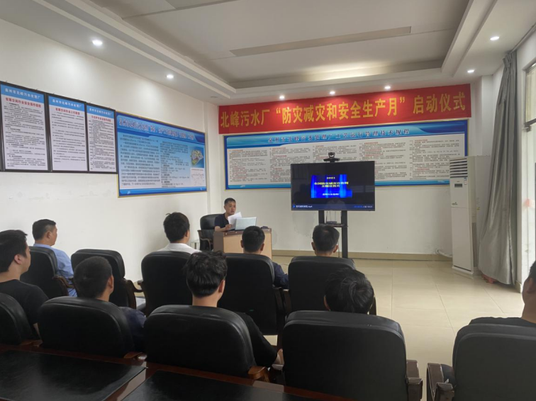 北峰污水处理厂启动仪式会议上,邱龙峰厂长指出,一是要提高认识,增强安全生产意识。认真做好“防灾减灾及安全生产月”活动工作,切实增强责任感、使命感和紧迫感,进一步做好强化措施,狼抓工作落实,不断提高安全生产水平,确保安全生产工作顺利进行、稳步发展。二是要深化安全风险防控及隐患治理,强化安全生产目标管理。深刻吸取近期省内多起典型事故教训,将安全隐患排查落实到员工个人,对排查出的问题坚决整改,严防安全生产事故发生。三是要加强宣传,提高员工安全意识和避灾应变能力。充分利用事故案例视频、宣传海报和安全培训等多种形式,进一步加强安全生产宣传教育。