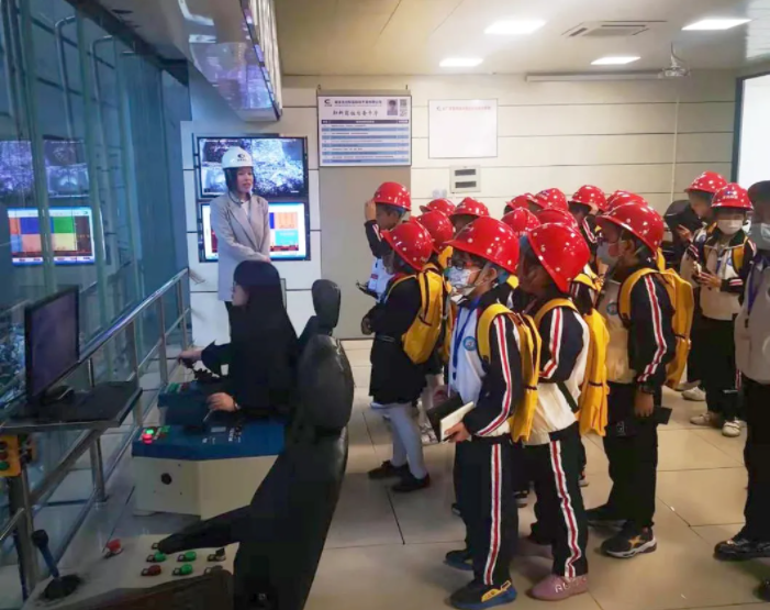 在讲解员的带领下,学生们参观了电厂垃圾吊控制室、中央控制室以及餐厨垃圾资源化处理厂等地,详细了解完整的生活垃圾与餐厨垃圾处置发电工作流程。目前,项目共有五条垃圾焚烧生产线,年可处理生活垃圾约100.8万吨,发电约3.528亿千瓦时,可节约标煤1.149亿千克,减排二氧化碳45万吨。