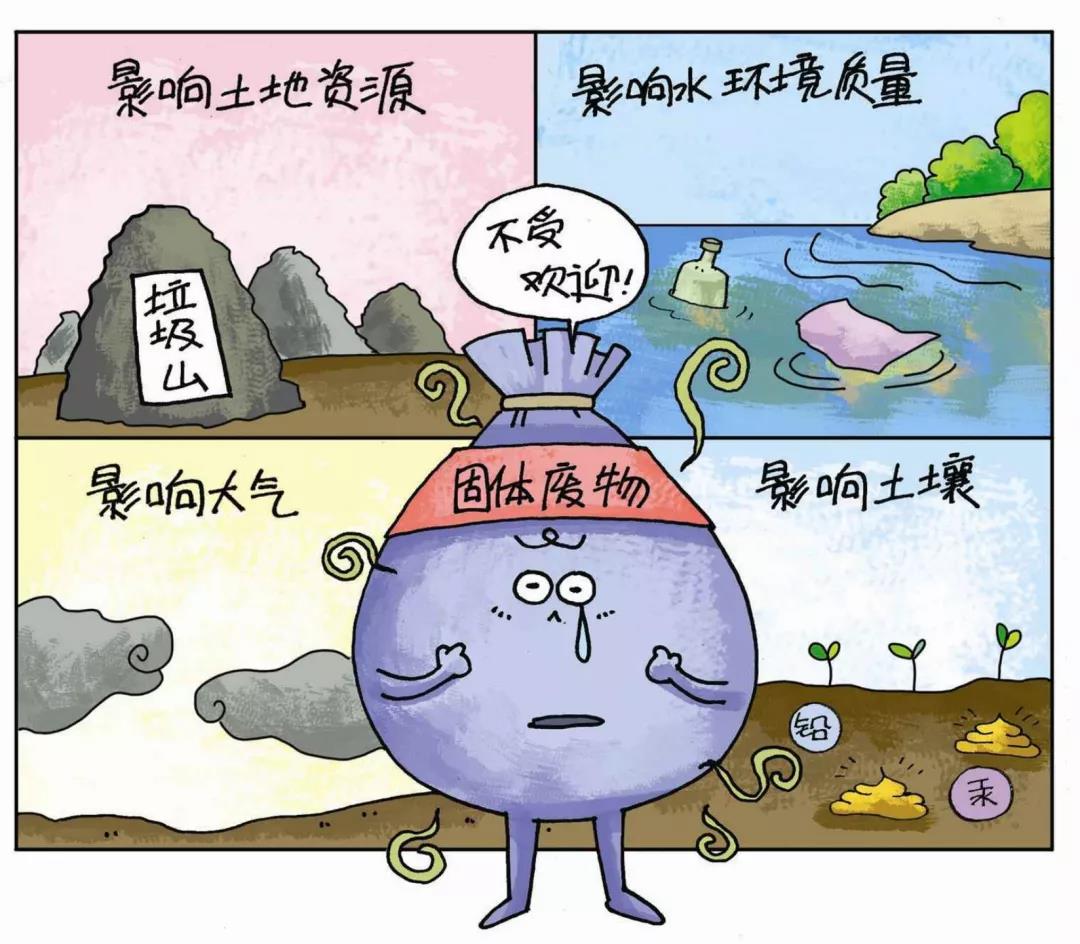 ③对大气环境质量的影响。固体废物在堆存和处理处置过程中会产生有害气体,若不加以妥善处理,将对大气环境造成不同程度的影响。露天堆放的固体废物会因有机成分的分解产生有味的气体,形成恶臭;固体废物在焚烧过程中会产生粉尘、酸性气体和二恶英等污染大气;垃圾在填埋处置后会产生甲烷、硫化氢等有害气体等。