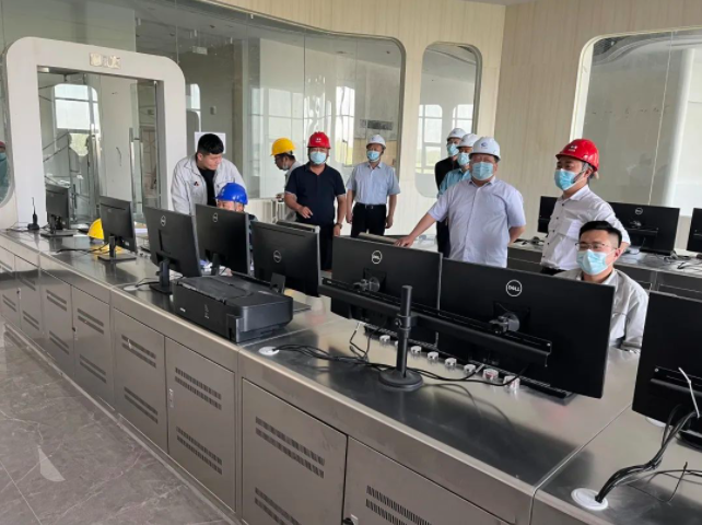 在项目二楼会议室,武领吉主任一行听取了项目总指挥朱玉成关于项目生产工艺、建设进度等情况汇报。随后,检查组深入现场,依次对中控室、渗滤液站、锅炉平台、汽机平台、卸料大厅、垃圾储坑、飞灰填埋场等进行检查。