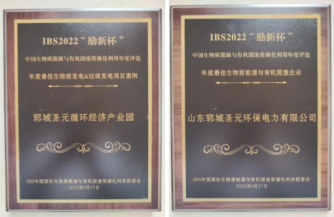 2022年9月27-28日,中国第十届生物质能源与有机固废资源化利用高峰论坛在杭州举行。颁奖晚宴上,郓城乐竞体育获颁IBS2022励新杯“年度最佳生物质发电&垃圾发电项目”及“年度最佳生物质能源与有机固废企业”两项荣誉。
