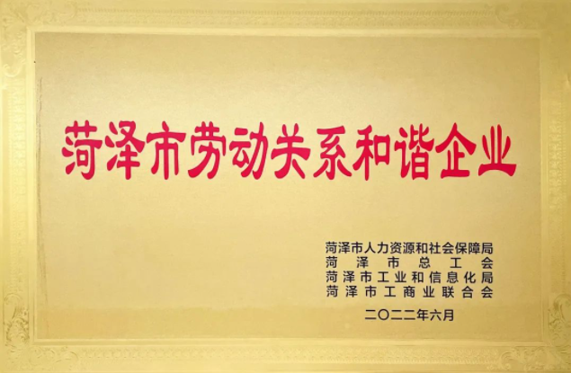 (二)郓城乐竞体育喜获“菏泽市劳动关系和谐企业”荣誉称号