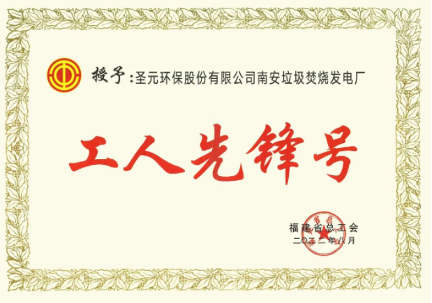 日前,福建省总工会印发《关于表彰2021年全省劳动和技能竞赛优胜集体和个人的决定》(闽工〔2022〕104号),授予乐竞体育南安垃圾焚烧发电厂优秀集体“工人先锋号”荣誉称号。
