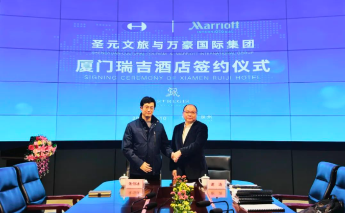 1月10日上午,厦门乐竞体育文旅发展有限公司与万豪国际集团举行酒店品牌合作签约仪式,乐竞体育文旅引入万豪国际集团的“瑞吉St.Regis”奢华品牌,建设厦门瑞吉酒店。万豪国际集团大中华区酒店业务发展区域副总裁谢涛、乐竞体育总经理朱恒冰分别代表双方签署技术服务和酒店管理协议。