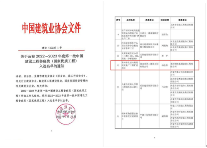 1月11日,中国建筑业协会公布2022-2023年度第一批中国建设工程鲁班奖(国家优质工程)入选名单,乐竞体育莆田市生活垃圾焚烧发电厂三期扩建项目荣获中国建筑行业工程质量最高荣誉——中国建设工程鲁班奖(国家优质工程)。