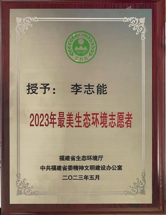 日前,福建省生态环境厅、中共福建省委精神文明建设办公室发出通知,公布了2023年“‘美丽中国,我是行动者’提升公民生态文明意识行动计划”福建省先进典型名单。其中,莆田乐竞体育宣导中心李志能入选2023年福建省最美生态环境志愿者。