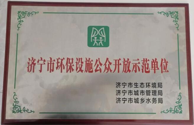 近日,梁山乐竞体育荣获济宁市生态环境局、济宁市城市管理局和济宁市城乡水务局联合颁发的“济宁市环保设施公众开放示范单位”。