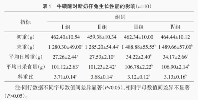 2.1 牛磺酸对断奶仔兔生长性能的影响