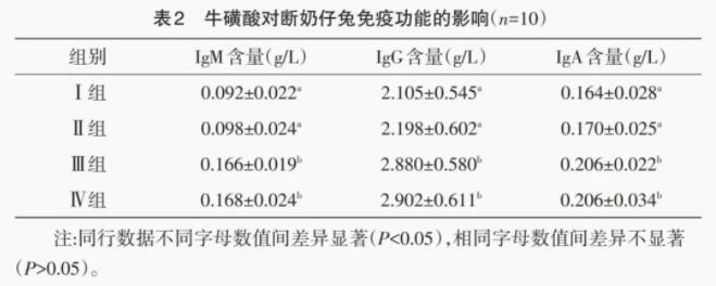 2.2 牛磺酸对断奶仔兔免疫功能的影响