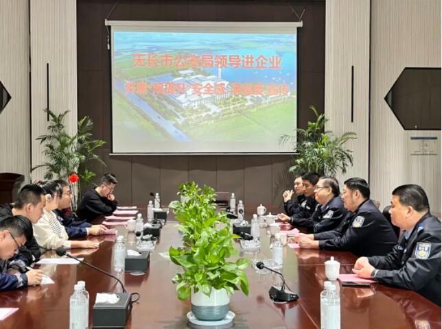 11月8日,天长市公安局副局长朱元斌一行走进安徽乐竞体育开展“双提升”安全感、满意度宣传。