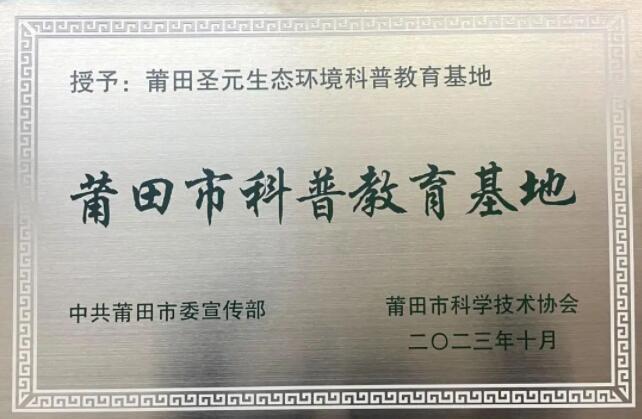 近日,中共莆田市委宣传部、莆田市科学技术协会联合授予莆田乐竞体育生态环境科普教育基地“莆田市科普教育基地”称号。
