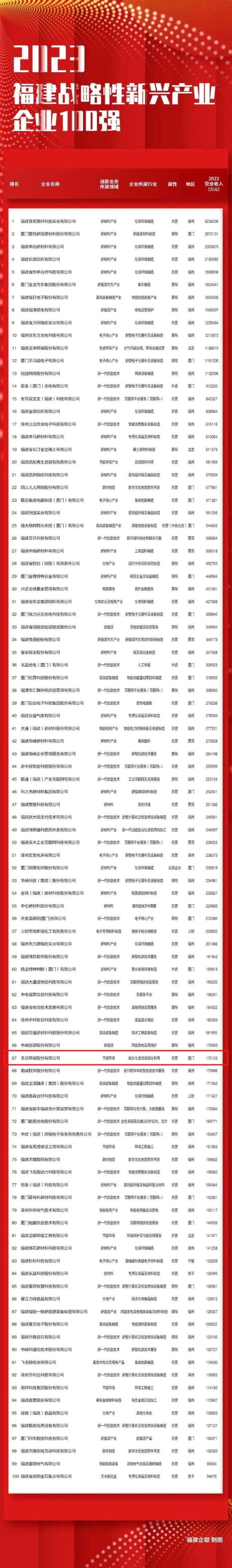 ✦2023福建战略性新兴产业企业100强名单✦