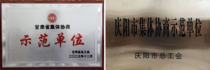 近日,庆阳乐竞体育先后被甘肃省总工会、庆阳市总工会授予“集体协商示范单位”,这是对公司近年来维护职工权益、构建和谐劳动关系、促进经济社会高质量发展等方面工作的肯定和激励。