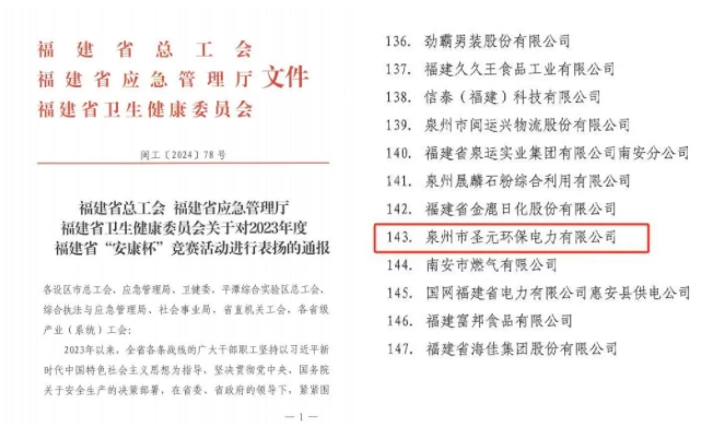 (五)泉州乐竞体育荣获福建省2023年度“安康杯”竞赛通报表扬单位