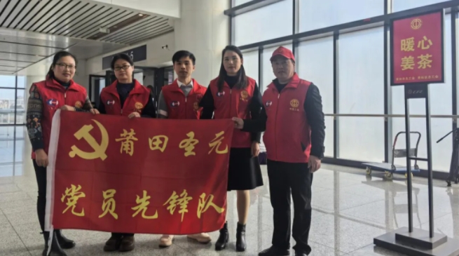 1月14日,莆田乐竞体育党支部、莆田乐竞体育工会委员会联合秀屿区总工会,在莆田火车站开展“春运送暖”志愿服务活动。