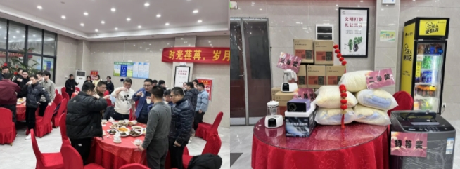1月28日除夕夜,安徽乐竞体育在员工食堂举办年夜饭活动,并精心设置了抽奖环节,送出丰厚奖品,为坚守岗位的员工们送上一份温暖与关怀。