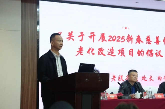 厦门市民政局养老服务处处长白锦焜在会上宣读《关于开展2025新春慈善快车适老化改造项目的倡议》,勉励会员企业在协会的桥梁纽带作用下,借助政策利好,积极参与厦门市养老服务工作,通过创新产品和服务模式,满足银发经济时代下老年人多层次、多样化的健康需求。