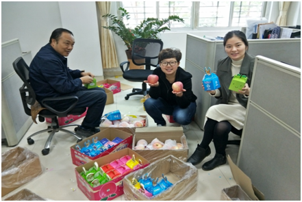 总部办公室员工收到工会发放的平安果