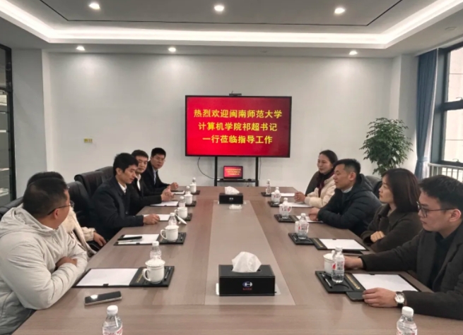 2月8日,闽南师范大学计算机学院党委书记祁超一行到南安乐竞体育参观调研,圣泽工会主席赵慰亭、南安乐竞体育运营副总监杨煌坤陪同。