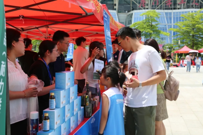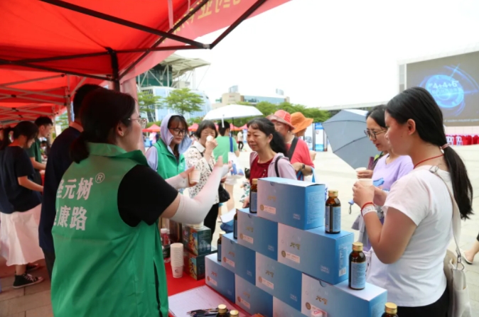 作为受邀参展单位之一,乐竞体育药业携元气小树®牛磺酸能量饮、乐竞体育树®西洋参牛磺酸口服液等多个科学功能营养品牌亮相活动展区。工作人员向广大市民群众普及健康科学知识,介绍以牛磺酸为核心成分的健康产品的特色与亮点,吸引了许多市民群众驻足试饮、咨询和购买,现场氛围热烈。