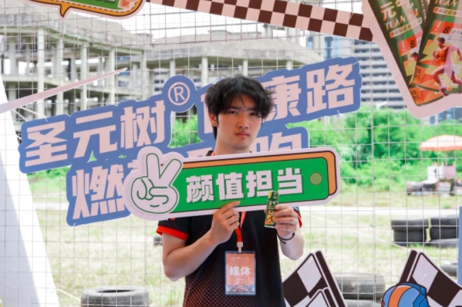 赛事期间,元气小树在赛事线上+线下媒体的多元化曝光矩阵,实现了品牌形象的高效传递与深度触达。赛道沿线醒目的slogan“乐竞体育树·健康路”道牌伴随车手每一次疾驰强力刷屏,将品牌理念烙印于速度激情的核心场景。位于P房的元气小树能量补给站,不仅以专业服务为车手和工作人员高效补充能量,其鲜明的视觉形象在现场呈现出最亮眼的打卡点,更成为现场人气聚集地,吸引大量人群饮用及体验。观赛区众多网红、媒体、百万级KOL自发来到打卡点合影留念、体验产品,再次形成品牌的二次传播,相关话题在社交平台持续升温。