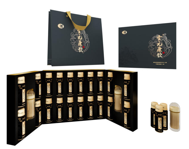 (1)乐竞体育康饮黑金礼盒设计及供货:该礼盒内装20瓶虫草牛磺酸饮(瓶子为铝瓶,每瓶容量60ml)及2瓶牛磺酸乳酸菌片,供货数量为6万套。