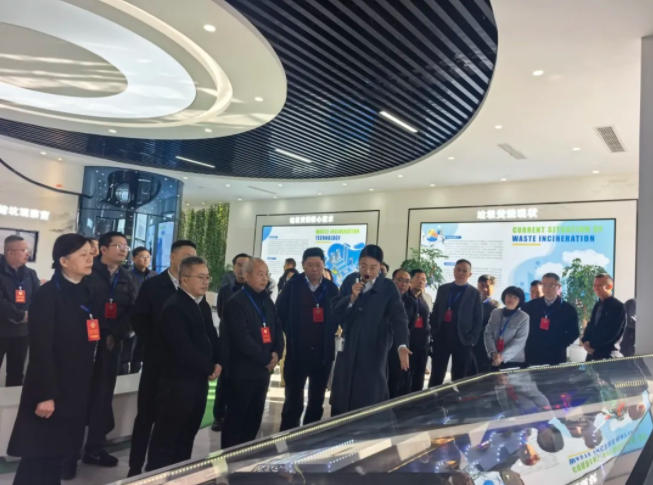 杨士彪一行深入公司参观通道、观景烟囱、中控室等区域,通过智慧环保监控大屏详细查看垃圾焚烧发电运行参数、烟气净化处理等实时数据,了解设备运行维护、污染物排放控制等关键环节,询问垃圾处理能力、发电效率及环保指标达标情况,对公司环保科普教育基地和全智能模拟体验系统给予充分肯定。