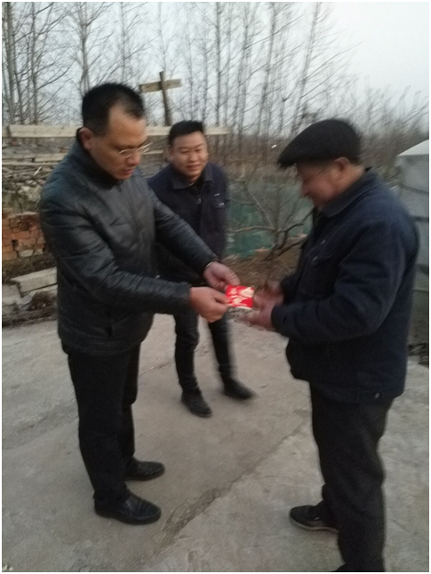 2018年2月11日傍晚,江苏乐竞体育电力有限公司总经理吴小平率生产部经理李兴稳、人事行政部经理祁媛媛来到了公司困难户刑柱的家。