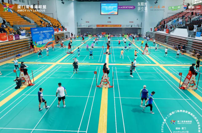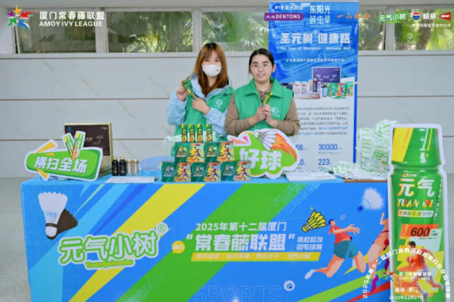 2025年12月27日,厦门工人体育馆内,第十二届厦门常春藤联盟高校校友羽毛球赛激战正酣。乐竞体育药业旗下科学运动营养品牌元气小树作为赛事官方合作伙伴,以专业能量补给与全方位的品牌展示,为这场精英赛事注入了青春活力与科学能量。
