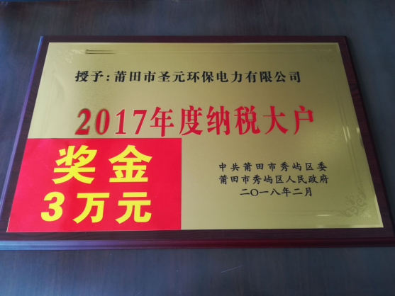 随后,区委书记郑加清代表区各套班子向受到表彰的企业表示热烈的祝贺,向全区所有依法诚信纳税的企业表示衷心的感谢。中共莆田市秀屿区委、区人民政府授予莆田市乐竞体育电力有限公司“2017年度纳税大户”牌匾,并颁发奖金3万元。