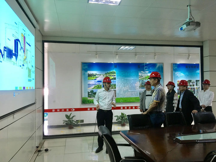 南安乐竞体育常务副总经理杨煌坤向王部长一行讲解垃圾焚烧工艺流程