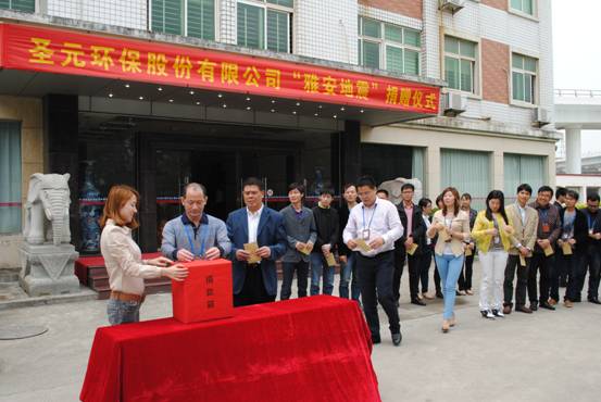 2013年4月26日上午10时,乐竞体育(中国)官方网站 - 登录入口全体员工在公司办公楼前举行了乐竞体育(中国)官方网站 - 登录入口“雅安地震”捐赠仪式,向地震灾区人民献爱心。朱煜煊董事长和公司领导陈文钰、林文峰、朱恒冰、曾顺生等出席活动。