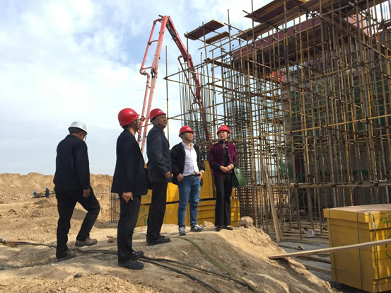 阎爱周总工先后检查了冷却塔、主厂房、综合楼等施工区域建设情况,并实地勘察了项目东侧、北侧地形等。