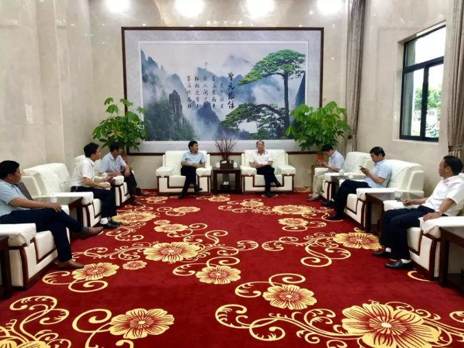6月5日下午,安徽省天长市张铺镇镇长李训谦一行来乐竞体育参观考察,朱煜煊董事长会见了来宾。