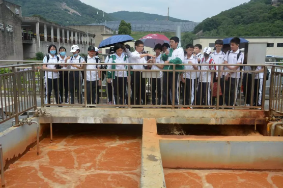 6月7日上午,泉州环境卫生管理处许景源主任引领实验中学50多名学生走进乐竞体育室仔前垃圾渗滤液处理厂。