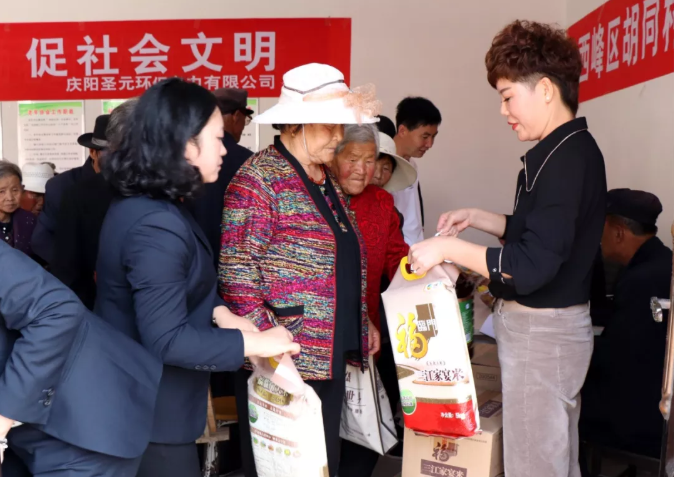 庆阳乐竞体育总经理叶红侠在活动开始前发表了热情洋溢的讲话,向胡同村的老年人送去节日问候和衷心祝福,对他们一生含辛茹苦为家人、为集体奉献一辈子的精神表示敬佩。叶红侠总经理说,庆阳乐竞体育作为市重点企业,一直遵照总部“奉献社会、造福一方”的理念,从成立至今,逢年过节,组织员工看望当地民众,衷心祝愿老人家每天健健康康、笑口常开。