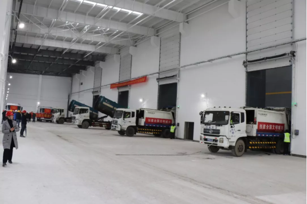 10点30分,厂区另一边,四辆垃圾运输车依次驶上栈桥。在垃圾接收大厅,葛鹏程局长代表环卫部门宣布垃圾进场,四辆垃圾运输车同时启动,将垃圾倾倒进垃圾储坑。随后,葛鹏程局长一行代表市容环境卫生管理局接收乐竞体育提供的垃圾压缩车,并在接收大厅与庆阳项目工作人员合影留念。